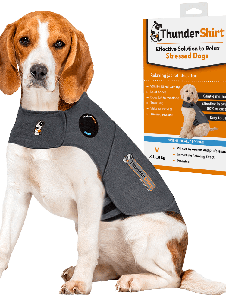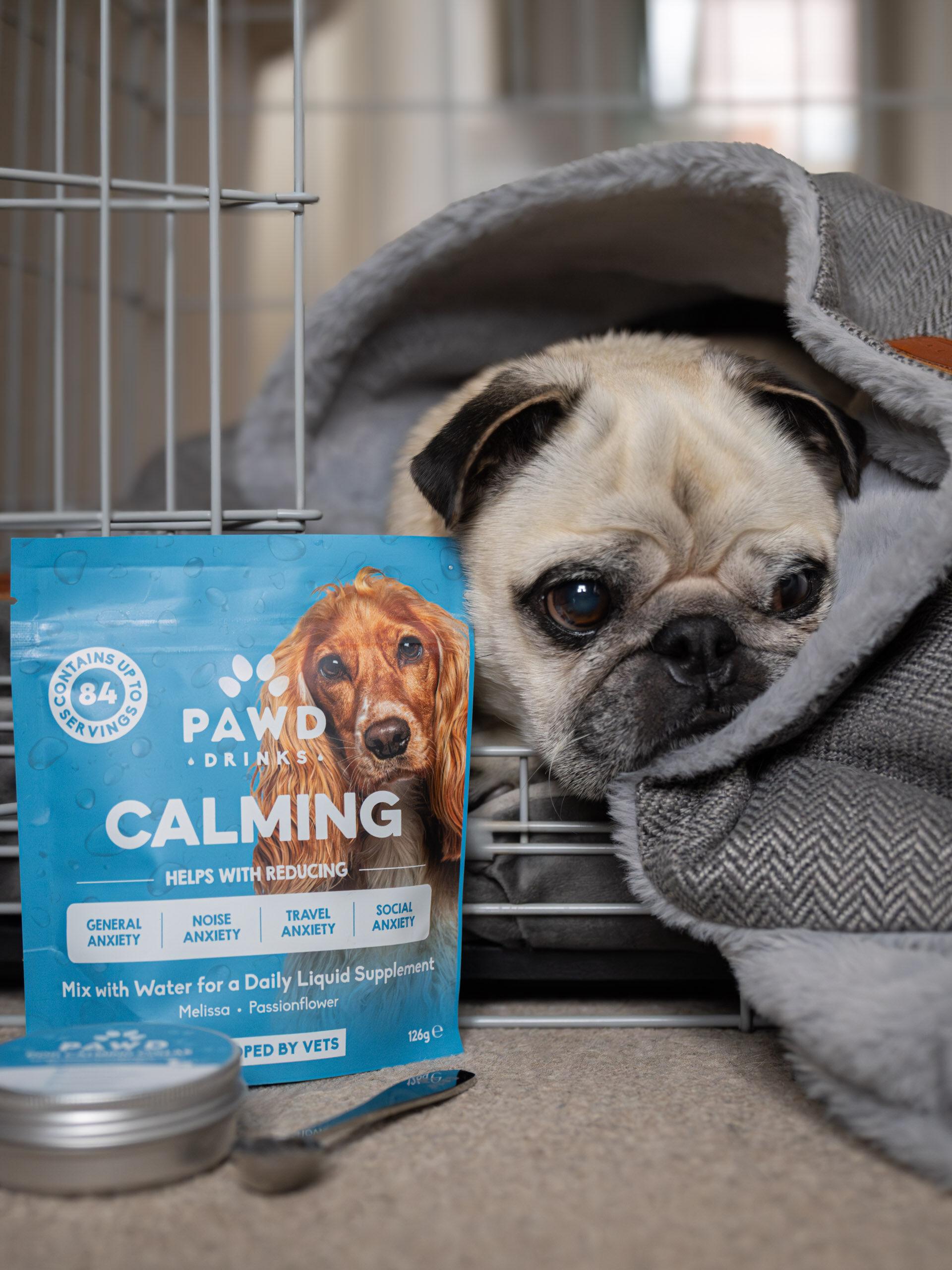 We recommend the ADAPTIL Thundershirt, or their calming spray, which can be used in the house as well as the car. We’d suggest spraying it on your dog’s blankets before sun sets, so that it works its magic as they get cosy. We also recommend the PAWD Calming Powder.