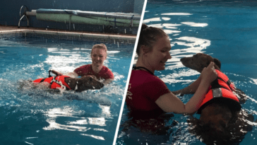 • A dog receiving a massage from physiotherapist Dominique Armitage Riley