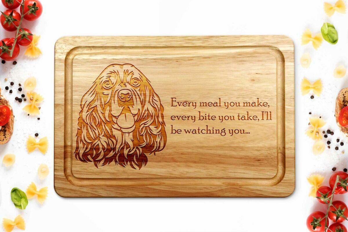 If anything describes our Cocker Spaniels perfectly, it's this chopping board. This Chopping Board has been designed and engraved, featuring an adorable Cocker, and integral juice groove. This long lasting design is made from sustainable Hevea Hardwood.
