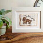 These personalised prints, make a great gift for Cocker Spaniel dog lover. You can choose from a range of colours, or work closely with the artist to customise a Cocker Spaniel similar to your very own. You can also choose to have other settings such as the dog on the grass, or at the beach.