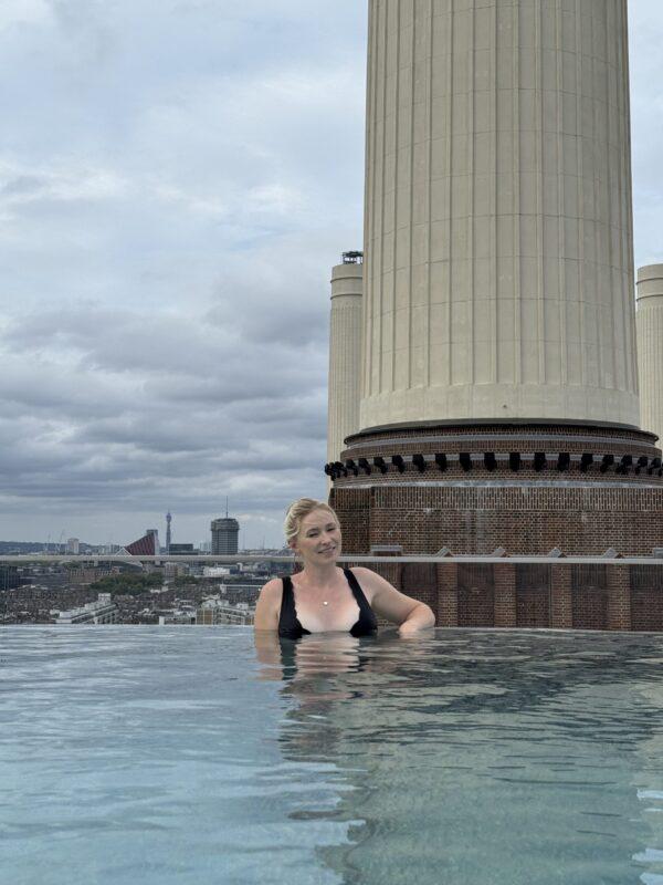 The rooftop infinity pool offers panoramic views over the Battersea Power Station chimneys and the London skyline. It’s advertised as heated, though it can feel a bit nippy outside of summer. Right beside it, the rooftop hot tub provides a warmer spot to soak while taking in the views.