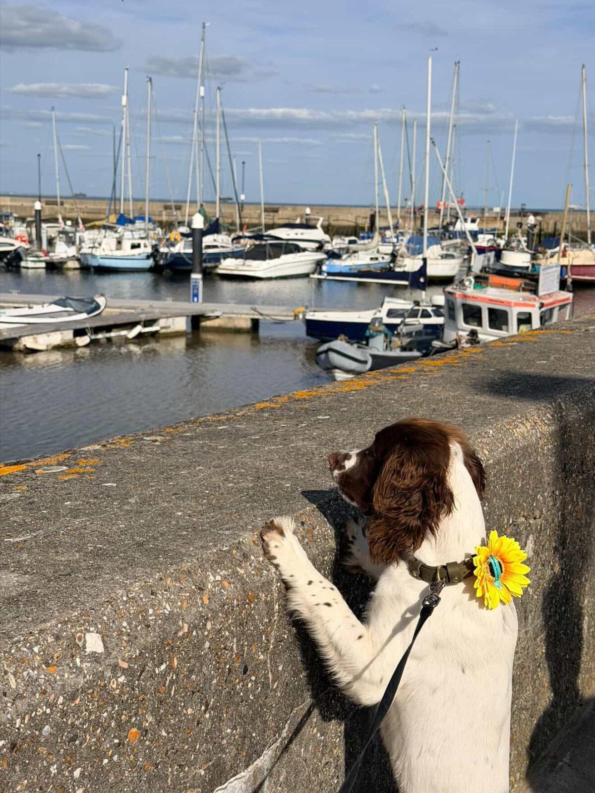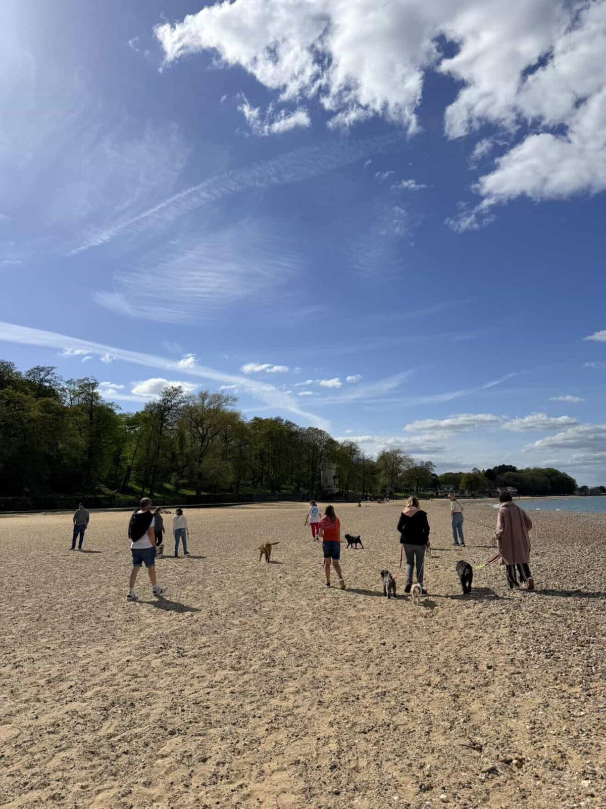 For this first one, we followed a planned coastal route, around 45 minutes in each direction along the beach. It was the perfect chance to make the most of it before restrictions come in from 1st May, when dogs aren’t allowed on certain parts of the beach. We stopped off halfway at PO41 for coffee and pup cups (one of my favourite coffee shops). The team are always so welcoming and kindly offered free pup cups in exchange for a donation to Mountbatten. It gave everyone a chance to pause, have a quick chat and let the dogs have a break before heading back.